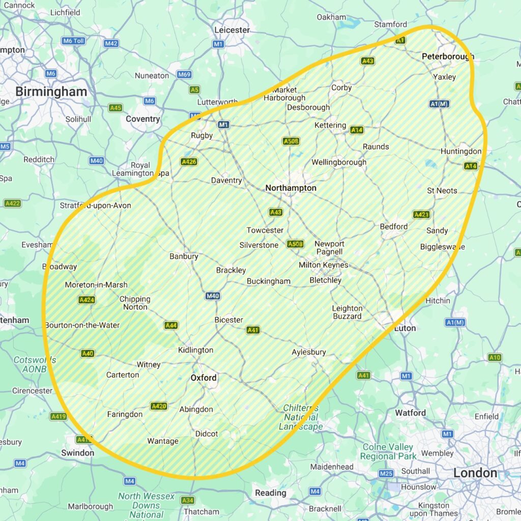 We cover Buckingham | Oxfordshire | Northamptonshire | Bedfordshire | Peterborough | Milton Keynes | Rugby | Southam and beyond. If you are unsure whether we deliver to your area please contact us.